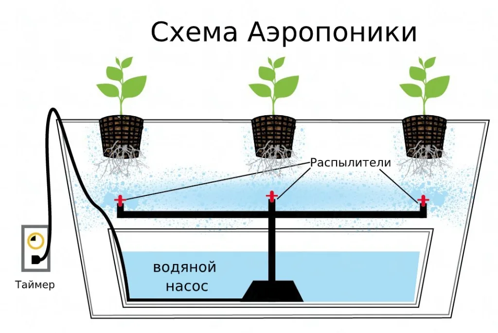 Новая технология выращивания не требует грунта. Корневая система растения находится в воздухе и орошается питательным раствором. Для этого в контейнеры устанавливается мелкокапельный полив, создающий эффект тумана. Лотки можно устанавливать в несколько ярусов, что позволяет значительно сэкономить пространство. Мелкокапельное орошение обеспечивает стремительное развитие растений.