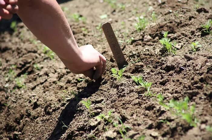 Засеянный участок мульчируют перегноем с песком либо компостом, смесью песка с торфом 1:1 или опилками. Полив не требуется. Желательно установить на месте посева табличку, чтобы отметить занятый участок.