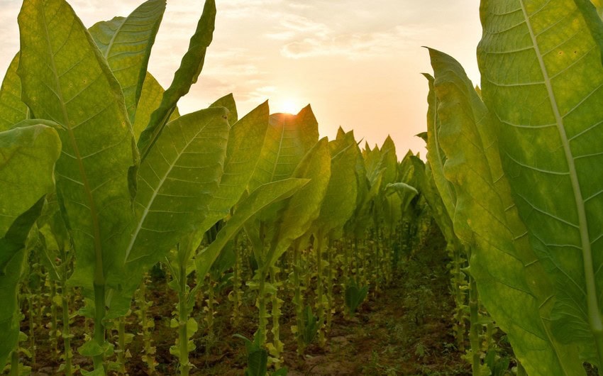 Сбор урожая табака начинают с нижних листьев, так как они созревают в первую очередь.