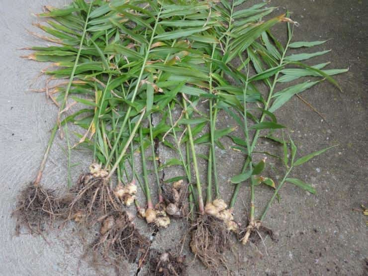 Выкапывать корень можно примерно через 10 месяцев, когда куст начнет желтеть и ложиться на землю. Чтобы корень лучше сохранился, за неделю до сбора урожая прекратите полив. Выкапывают имбирь вместе с комом земли, затем аккуратно очищают корнеплод и убирают надземную часть растения. Для длительного хранения корень нарезают мелкими кусками, просушивают и помещают в холодильник.